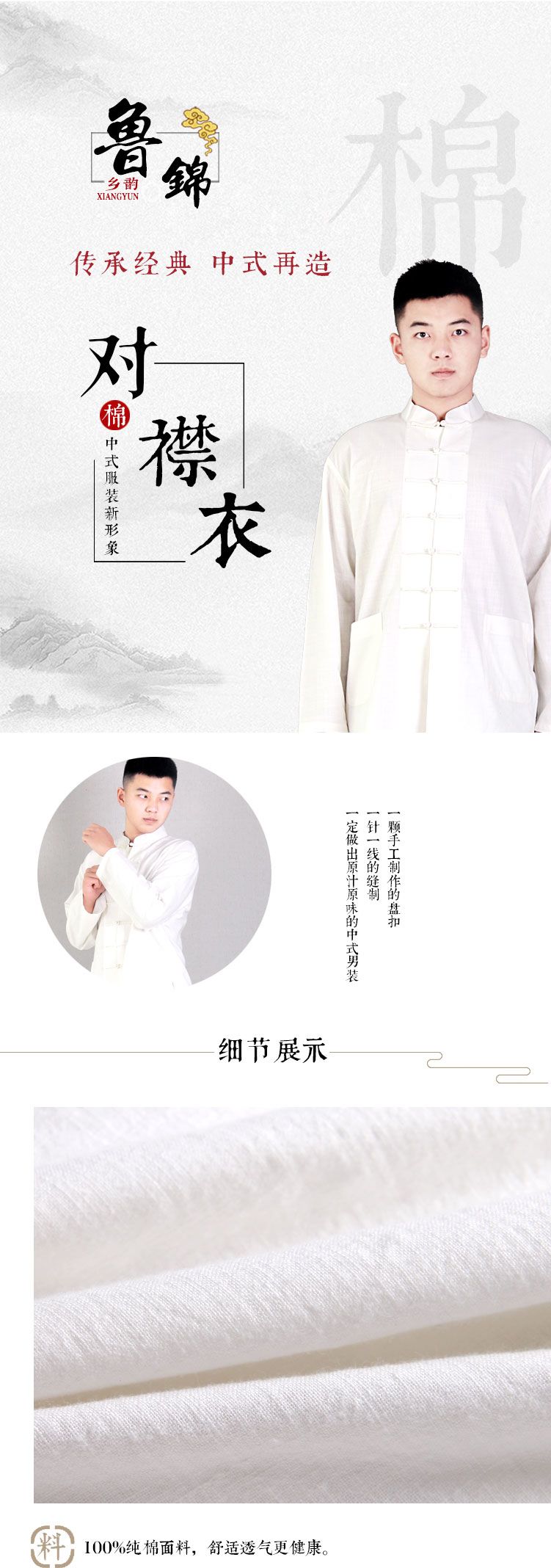【乡韵鲁棉】男士长袖唐装 复古 民族风 美观大方 古朴 典雅 舒适 纯手工工艺精心制造
