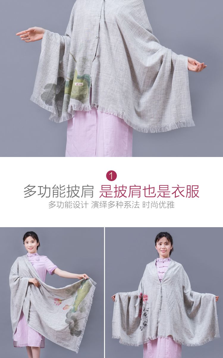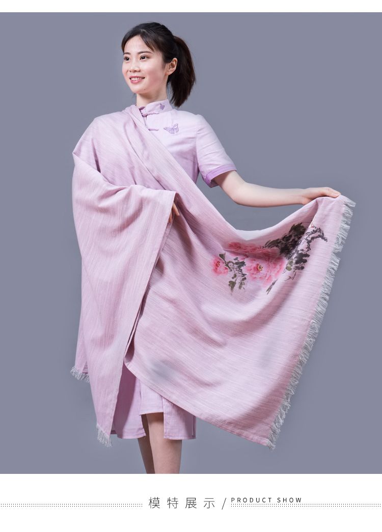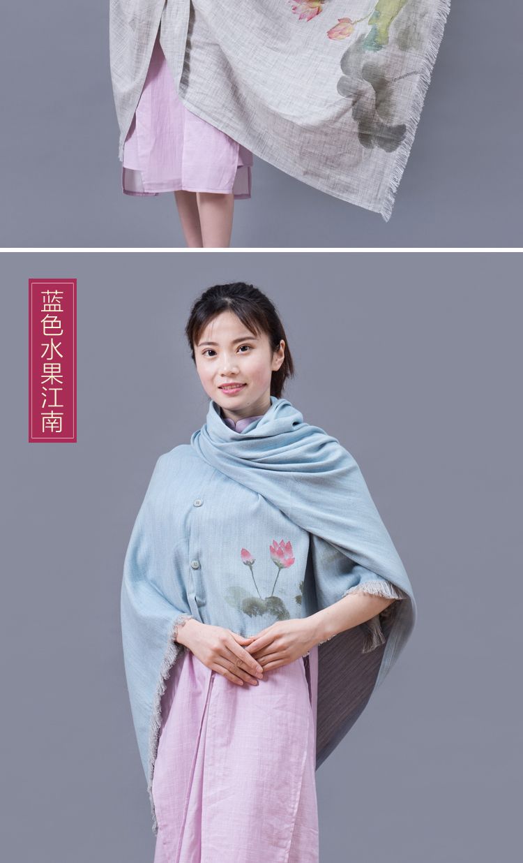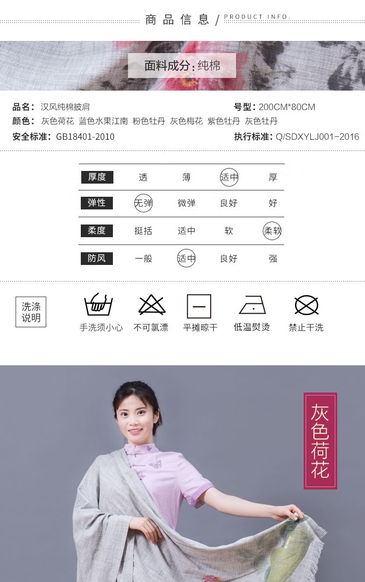 【乡韵鲁锦】女士披肩 多功能手绘 纯棉材质 柔软舒适 冬暖夏凉 手绘图案 笔法娴熟 细腻绘制