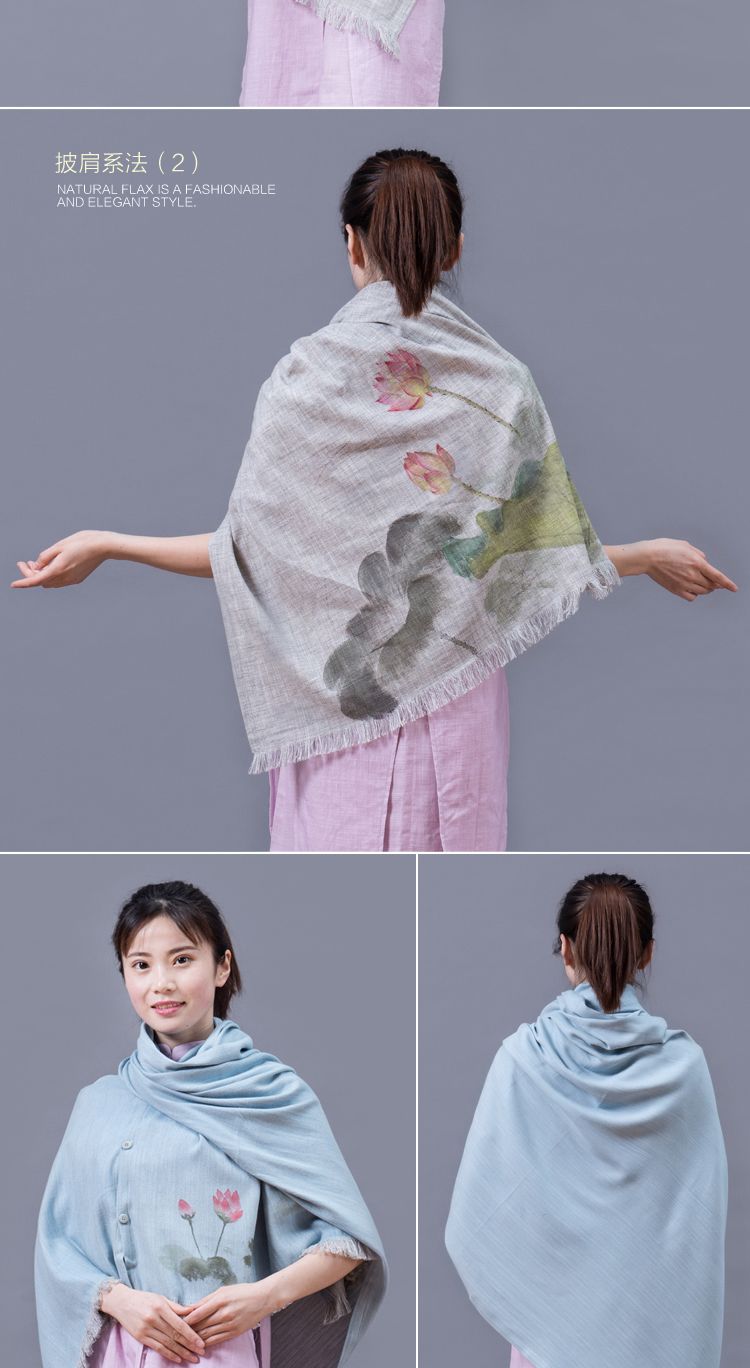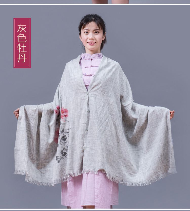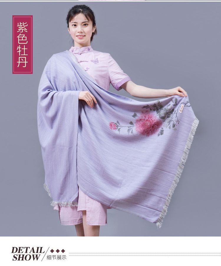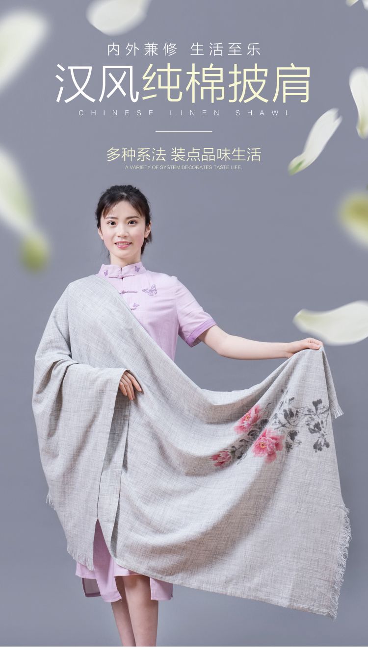 【乡韵鲁锦】女士披肩 多功能手绘 纯棉材质 柔软舒适 冬暖夏凉 手绘图案 笔法娴熟 细腻绘制