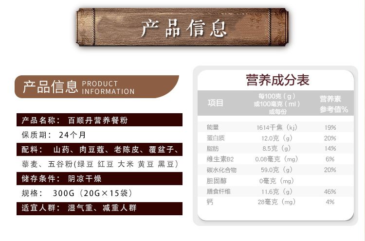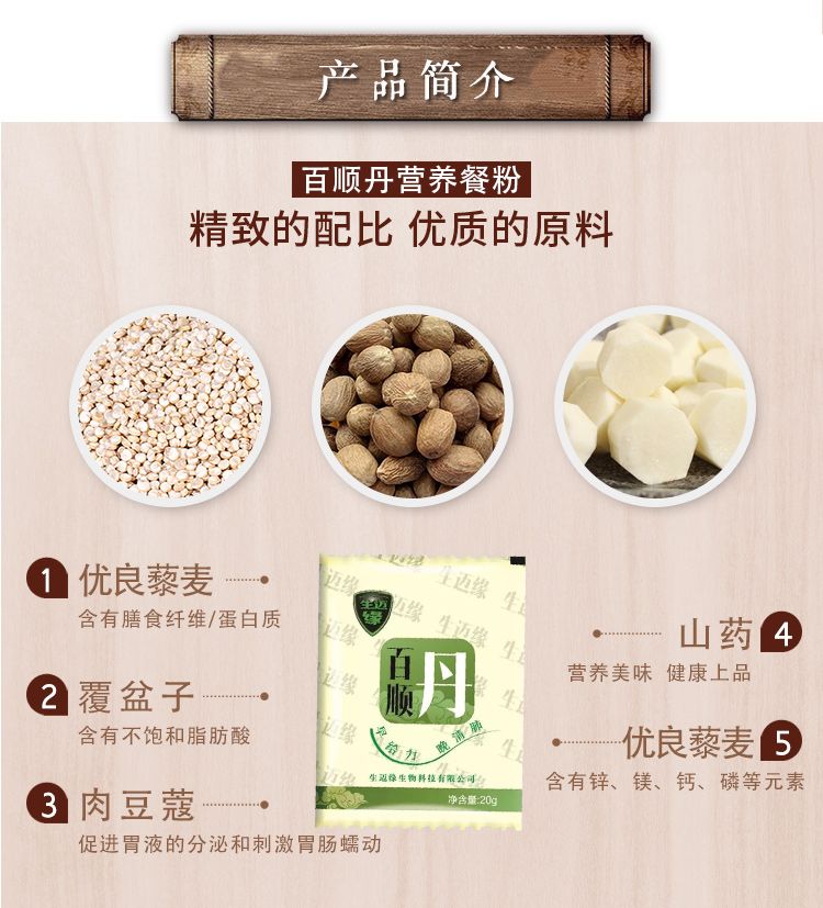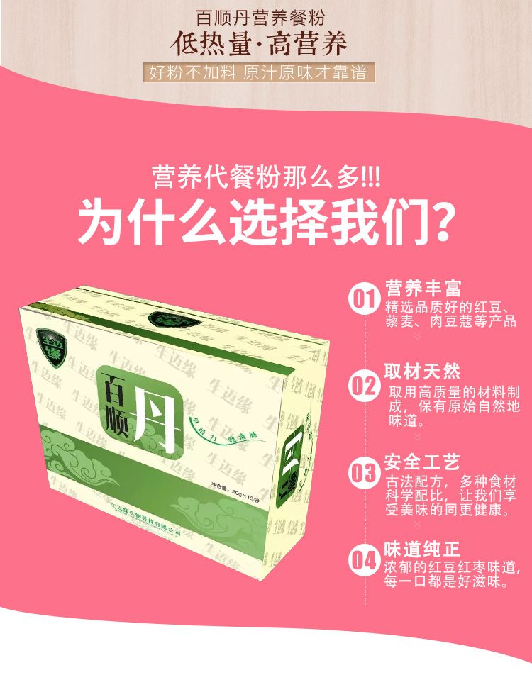 【生迈缘】百顺丹营养餐粉 (20g*15包)/盒*2盒 有机藜麦