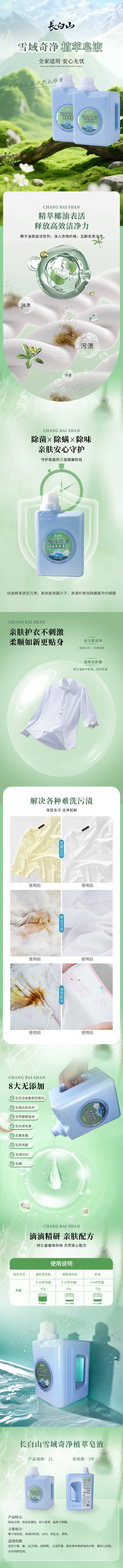 【竹妃】植物小分子洗衣液 1kg/瓶 植物萃取 祛污除渍 易漂洗 安全易漂洗 无磷 无荧光剂