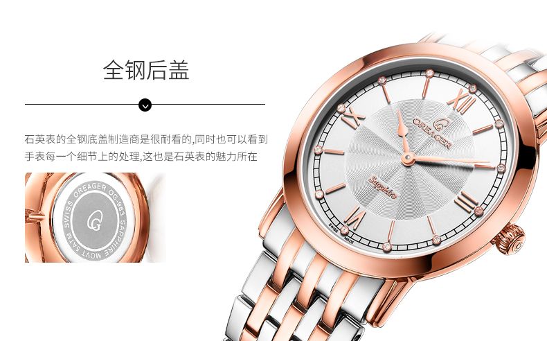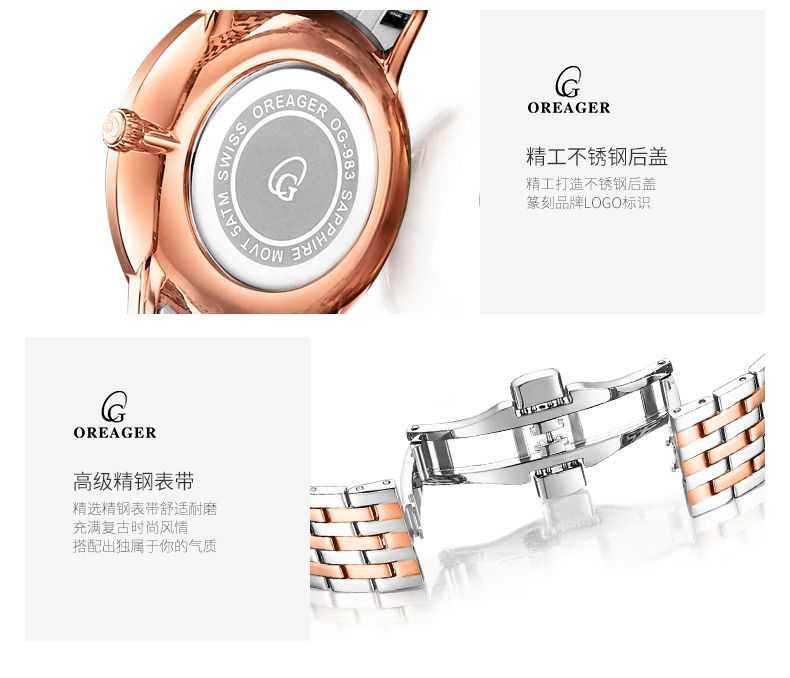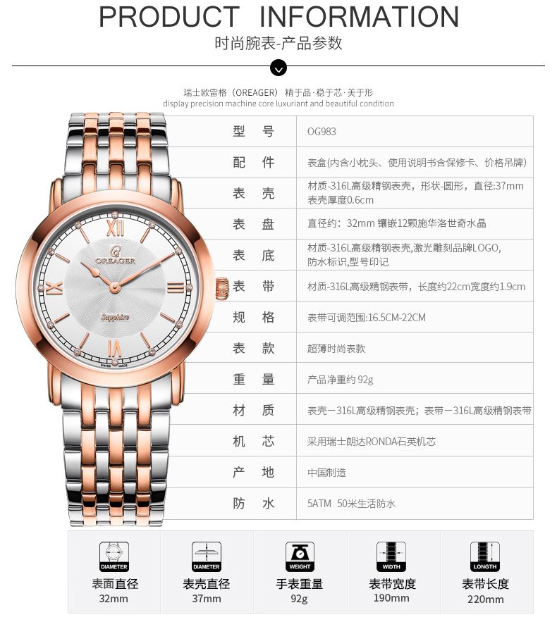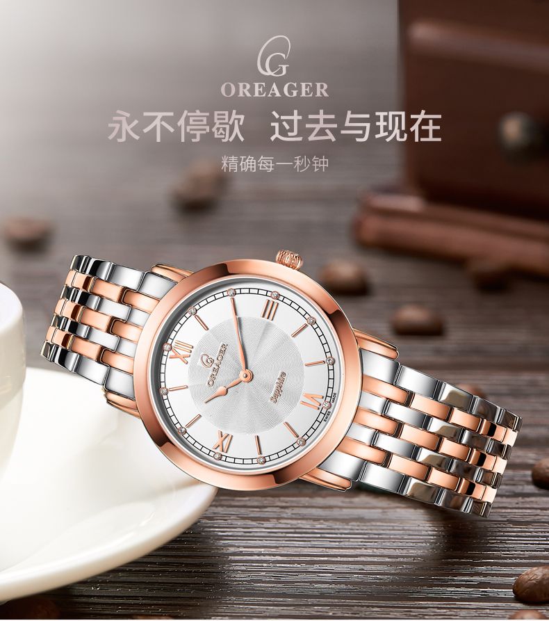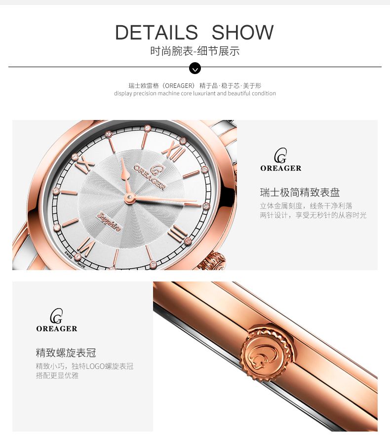 【欧雷格】瑞士 OG超薄石英 904K 女款手表 防水防刮 OREAGER