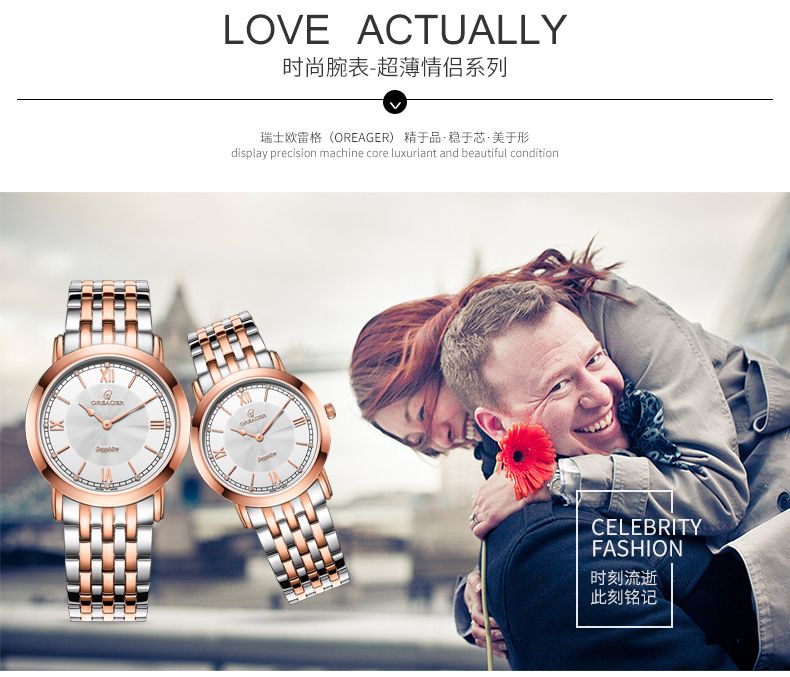 【欧雷格】瑞士OG超薄9133 男士女士手表 防水防刮 OREAGER