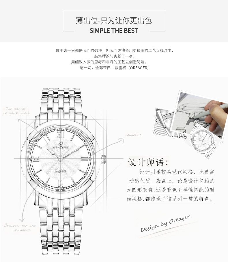 【欧雷格】瑞士OG超薄9117 男士手表 防水防刮 OREAGER