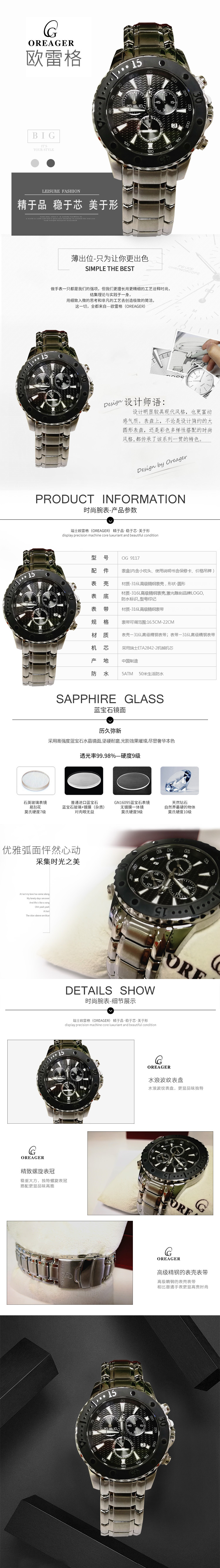 【欧雷格】瑞士OG超薄9117 男士手表 防水防刮 OREAGER