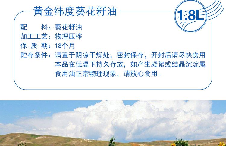 【黄金纬度】葵花油 2.5L/桶 河套优品 精选原料 营养丰富 色泽透亮 清香爽口