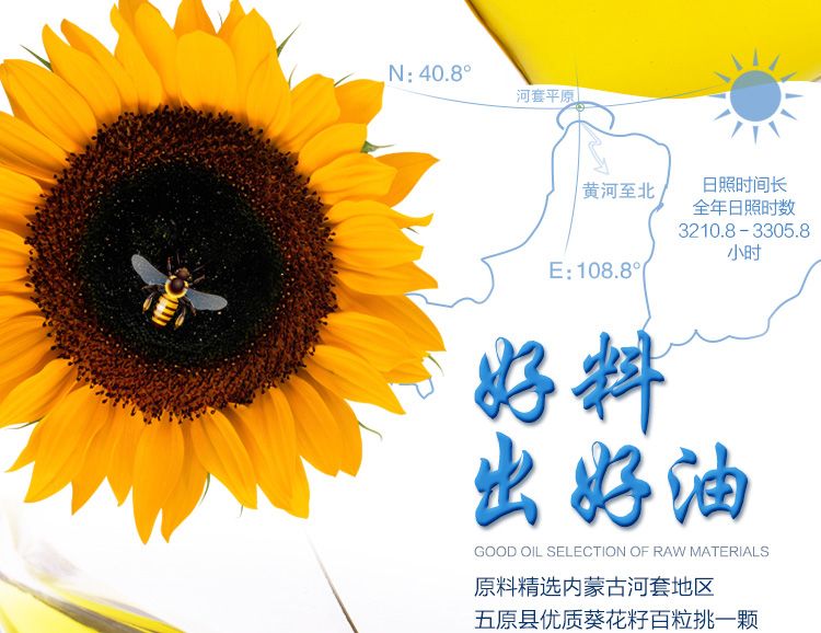 【黄金纬度】葵花油 5L/桶 河套优品 精选原料