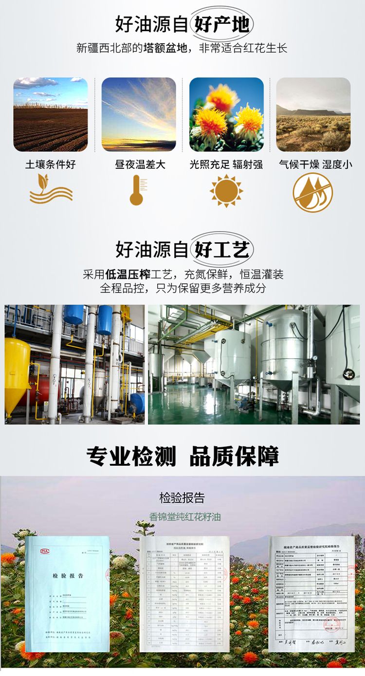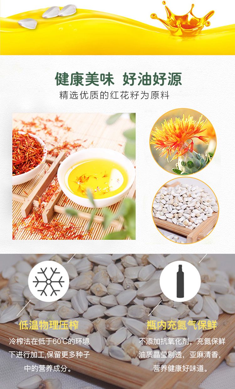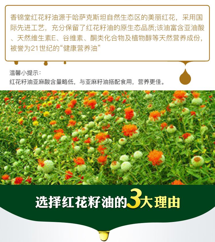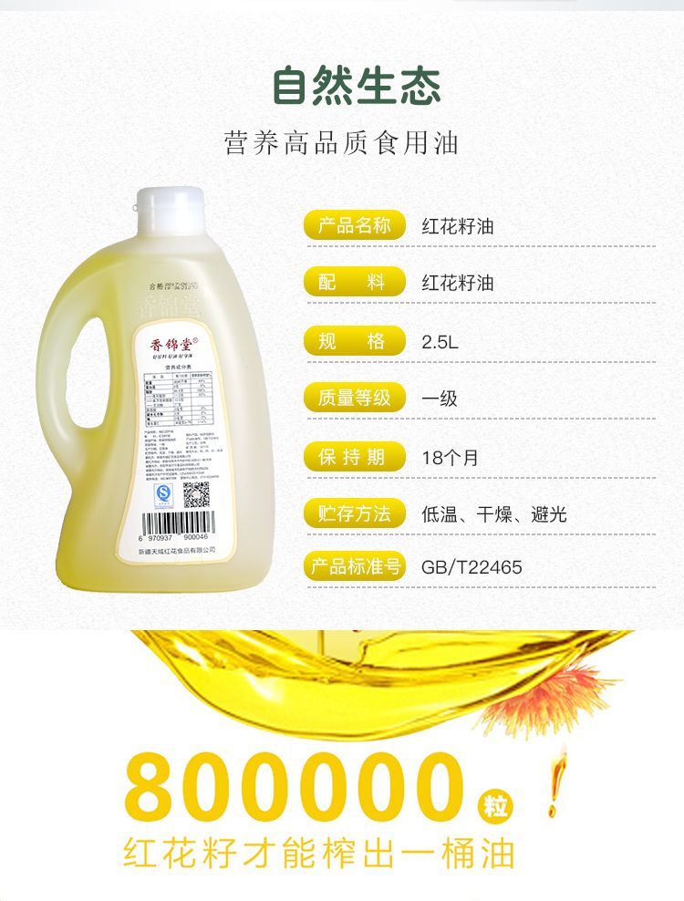 【香锦堂】纯红花籽油 2.5L/瓶 精选原料 低温压榨 色泽透亮 口味清香
