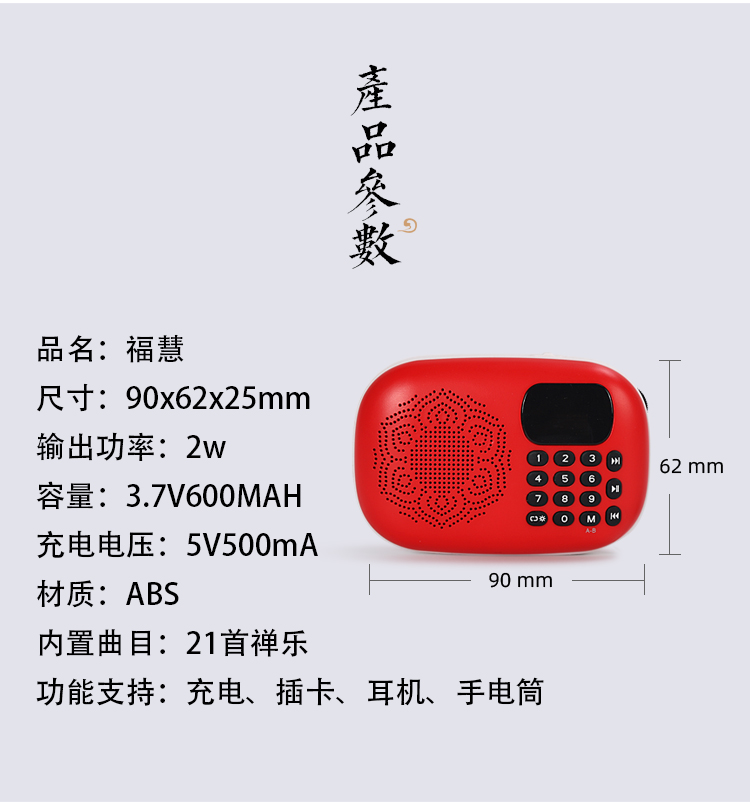 【三宝文化】福慧音箱 福慧双增 可插耳机 数字键盘 按键操作 LED灯可夜间照明